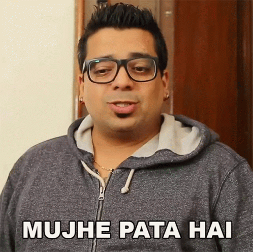 Comedian Jeeveshu Ahluwalia says 'Mujhe Pata Hai' (I know) directly to the camera.