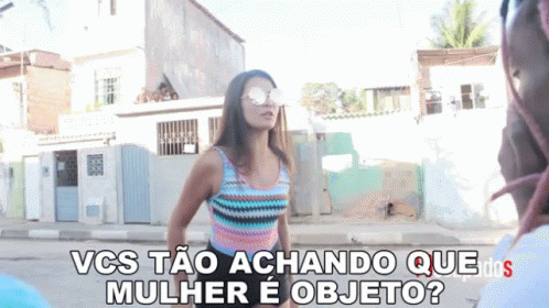 Woman in sunglasses confronts someone on the street, angrily asking, 'Do you guys think a woman is an object?'