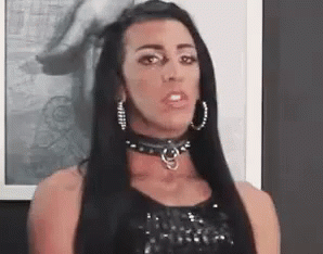 Mulher Pepita expresses annoyance and impatience, wearing a choker and large hoop earrings.