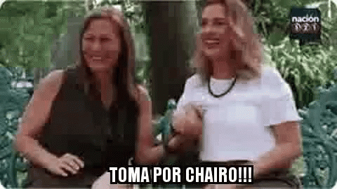 Two women, possibly Beatriz Müller and Tatiana Clouthier, react to a 'chairo' comment on a park bench.