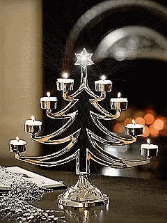 A festive Christmas tree shaped candle holder, adorned with glitter and topped with a shining star.