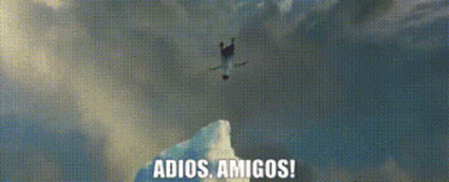 Mumble the penguin bids 'Adios Amigos' before dramatically diving off a snow-covered mountain peak.