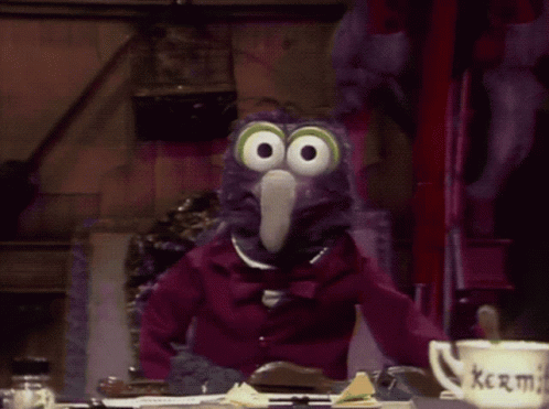 Gonzo from The Muppet Show reacts to a joke making a comeback, delivering a classic line.