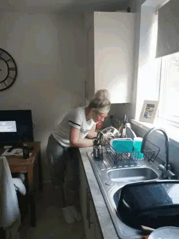 The Swedish Chef is surprised when Dr. Bunsen Honeydew pops out of a pot in the kitchen.