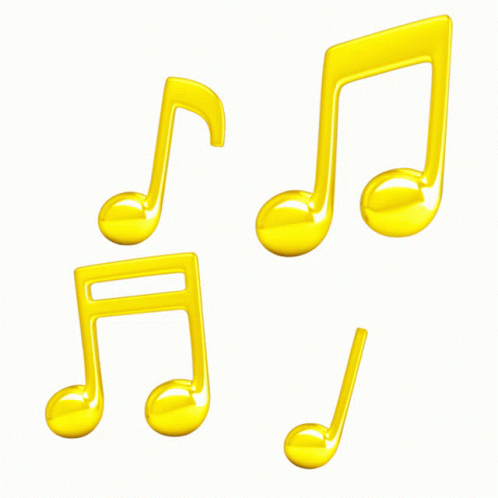 Four shiny golden music notes, including eighth, quarter, and half notes, against a white background.
