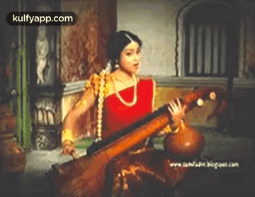 Shriya in traditional attire, beautifully singing and playing the veena, creating a romantic mood.