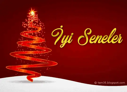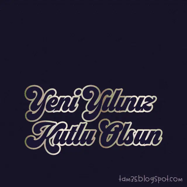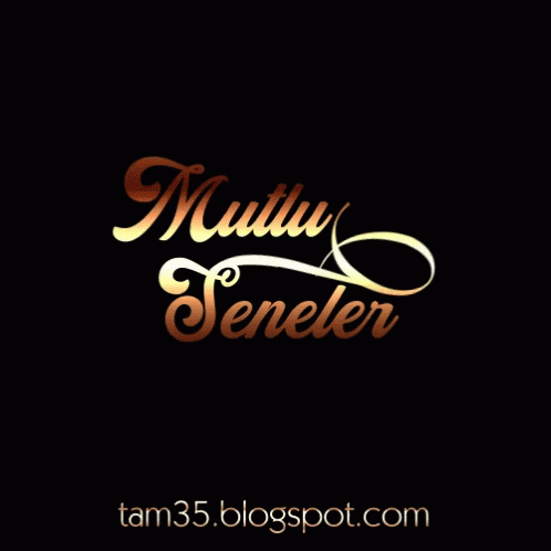 Golden, sparkling 'Mutlu Seneler' text on a black background, wishing a Happy New Year.
