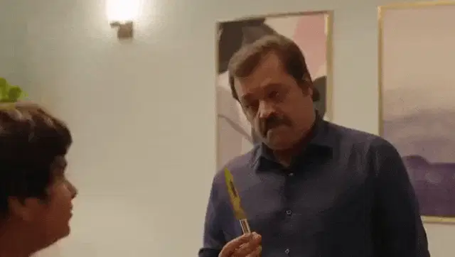 Gopi and other characters from the Indian TV show FIR discuss a headache in a comedic office scene.