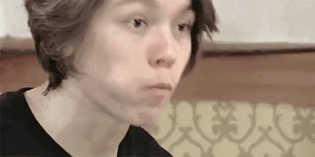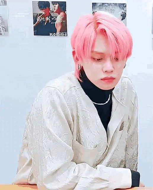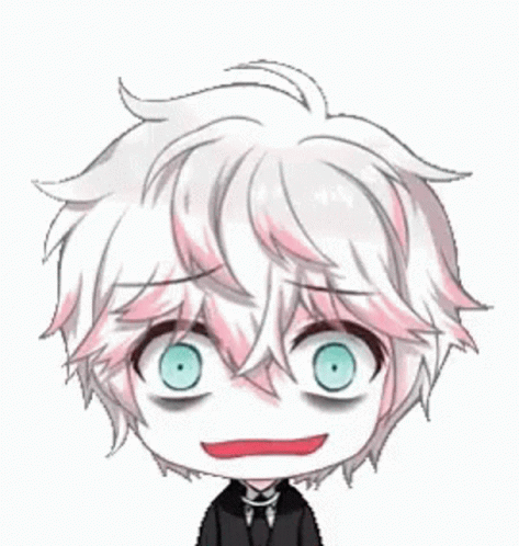 Chibi Saeran from Mystic Messenger with wide, shocked eyes and a forced smile.