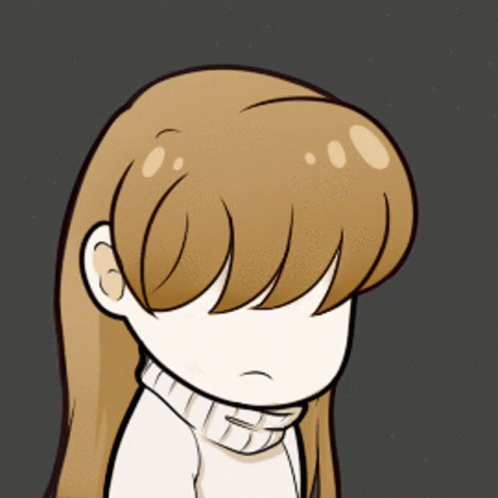 Chibi Mystic Messenger Mc thinking with a thought bubble, featuring long brown hair and a white turtleneck.