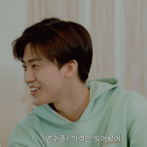 NCT Dream's Na Jaemin laughing and smiling, reacting to a question about tearing off a price from a receipt.