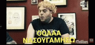 Fanis Labropoulos shouting 'OOOAAAA' with a strong expression, wearing a Netwixers shirt.