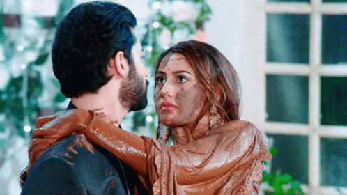 Naagin5's Veerb shares an intense, muddy embrace with a woman covered in a brown substance.
