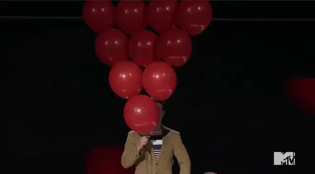 Nad Catier, an animated character, floats in a hot air balloon with heart-eyes, holding colorful balloons.