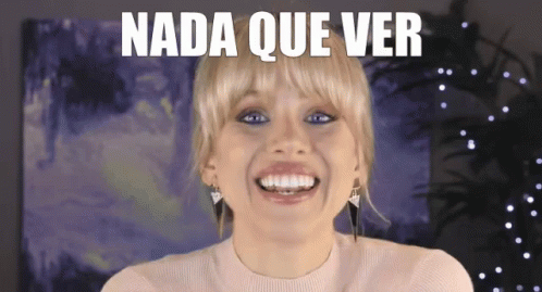 A woman making a funny face with the Spanish phrase 'Nada Que Ver' (Nothing to do with it) displayed above her.