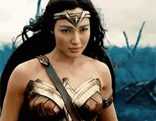 Nadine Lustre portrays Wonder Woman, looking serious and confident in her iconic costume.