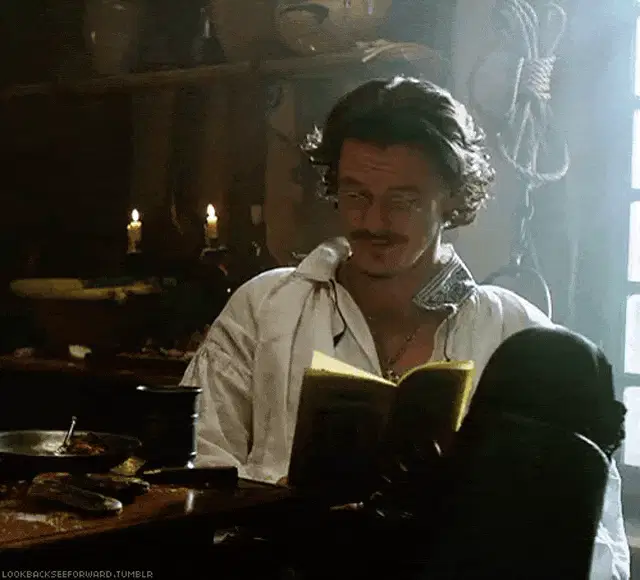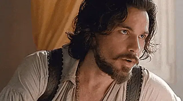 Dmitry Nagiev in musketeer attire walks in an ornate room, with the caption "I sincerely sympathize with you".