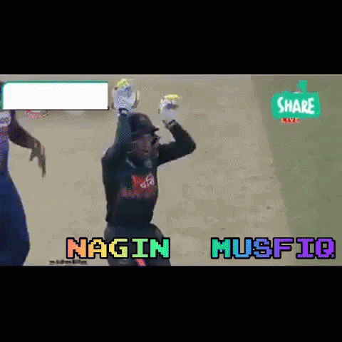 Cricketer Musfiqur Rahim performs the iconic Nagin dance celebration on the field.