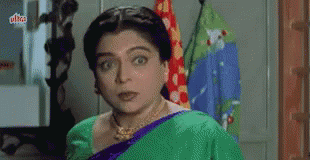 Woman in green saree makes an exaggerated 'No no' expression, showing anger and upset.