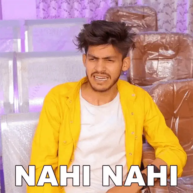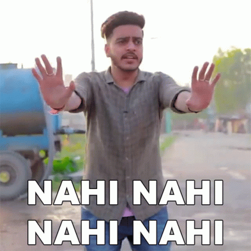 Rachit Rojha makes a 'Nahi Nahi Nahi Nahi' stop gesture, expressing refusal or caution with both hands.