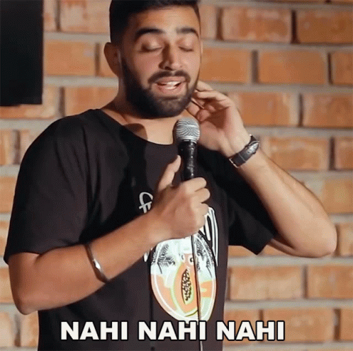 Comedian Rahul Dua emphatically says 'Nahi Nahi Nahi' during a lively stand-up comedy performance.