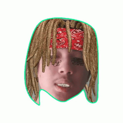 Nam2k N2k's head with dreadlocks and a red bandana, featuring facial tattoos and grillz, rotating dynamically.