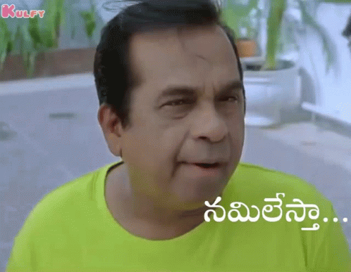 Brahmanandam makes a hilarious 'Namilestha' expression in a green shirt, a popular meme from Yevadu Movie.