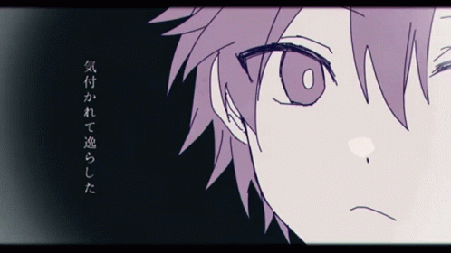 Animated close-up of ななもり (Nanamori) with purple hair, eyes averting gaze, and Japanese text.