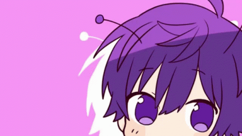 Nanamori ななもり, a chibi character with purple hair, dances while holding a heart-shaped planet in this cute animation.