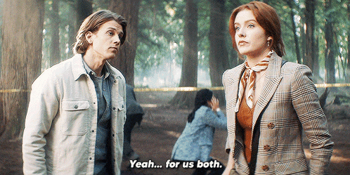 Nancy Drew Ace and Alex Saxon in the woods, saying 'Yeah... for us both.'