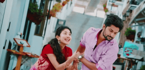 Nani and a woman share a playful moment, holding hands and hugging with smiles.