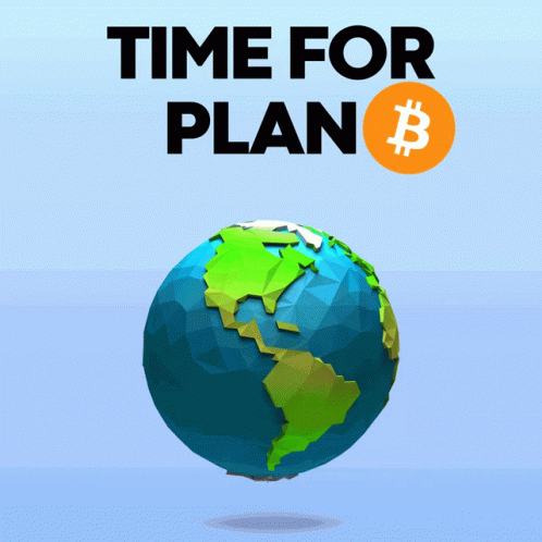 An animated low-poly Earth with text changing from 'Time for Plan B' (Bitcoin) to 'Time for Nano'.