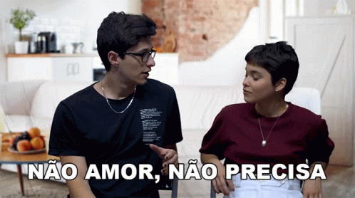 A woman tells a man 'Não Amor, Não Precisa' (No Love, No Need) in a Drelacionamentos clip.