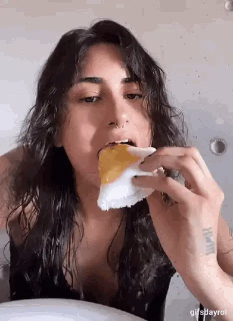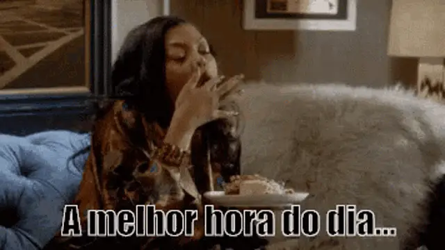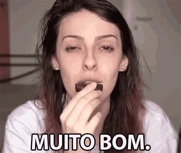 Cecilia Padilha in a rustic kitchen, with the text 'Não Consigo Parar De Comer' (I can't stop eating) overlaid.