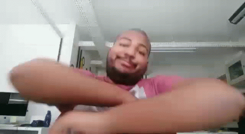 Lufe reacting with a 'Não me Diga' expression, smiling with arms crossed.
