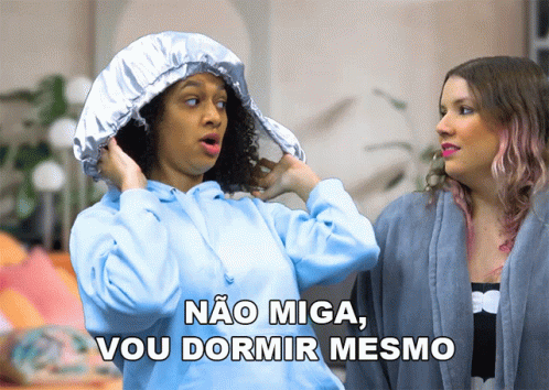 A woman in a satin bonnet and hoodie tells her friend she's really going to sleep. From Drelacionamentos.