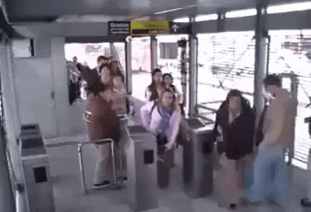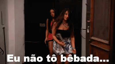 A woman dramatically falls to the ground while insisting, 'Eu não tô bêbada...' (I'm not drunk...).
