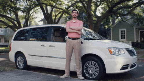 Ron Capps, representing NAPA KnowHow, stands confidently with arms crossed next to a white minivan.