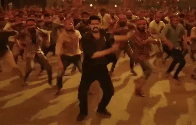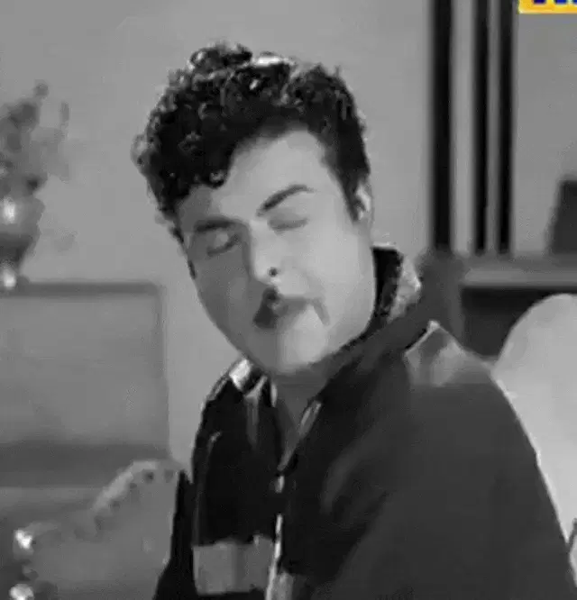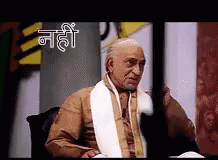 Amrish Puri, the iconic Indian actor, expresses strong disapproval with a firm 'No' and an angry gesture.
