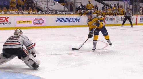 Colton Sissons of the Nashville Predators takes a shot on goal during an intense hockey game.