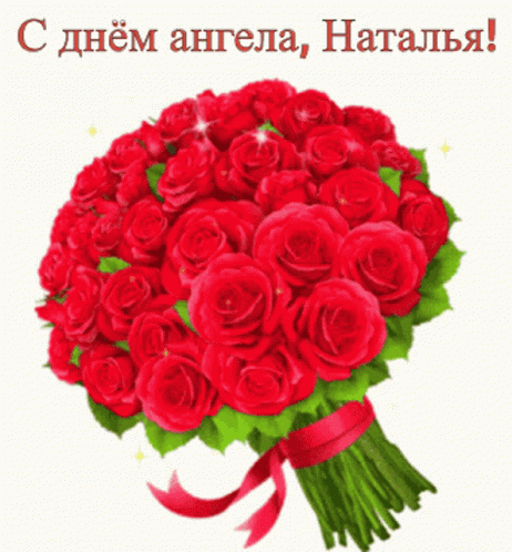 A festive greeting for Natalya, featuring a beautiful bouquet of red roses and sparkling lights.