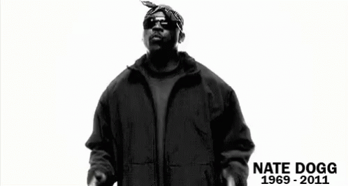 A black and white tribute to Nate Dogg, featuring his image and birth/death years.