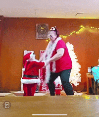Natalia, also known as Psychicnatalia, and a child dressed as Santa Claus dance joyfully, celebrating Christmas.