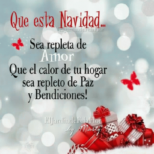Wishing you a Christmas filled with love, and your home with peace and blessings, depicted with red butterflies and gift boxes.