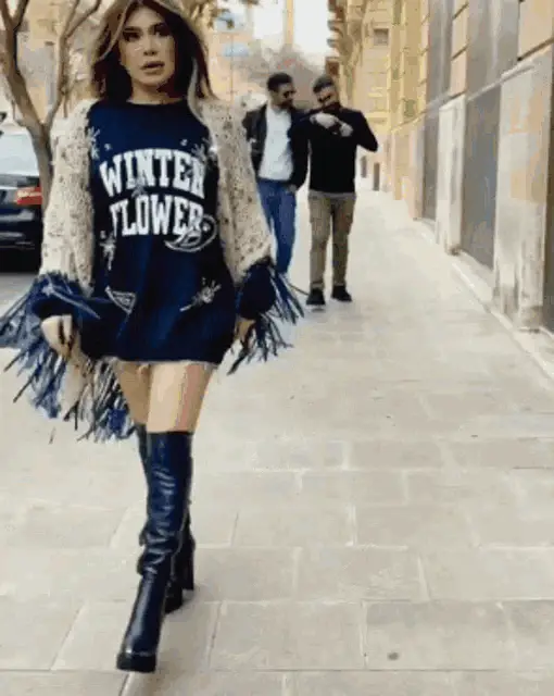 Nawal, wearing white sunglasses and a 'Stella Jean Roma' shirt, blows a kiss from inside a private jet.