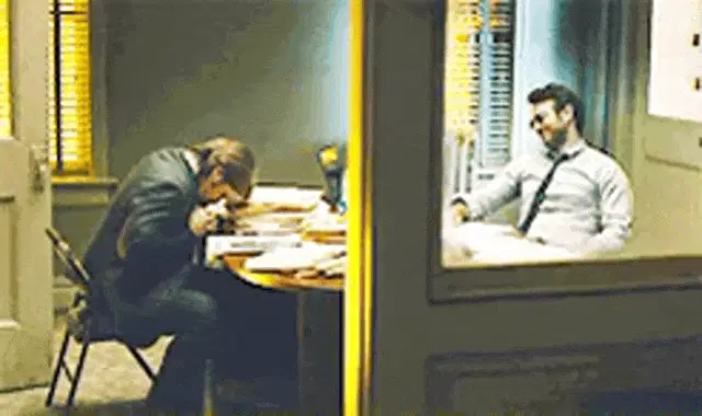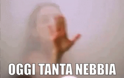 Lisa Edelstein behind a foggy glass, revealing her face as the Italian caption 'OGGI TANTA NEBBIA' appears.