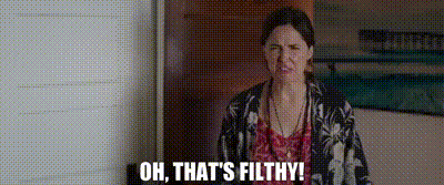 Kelly Radner reacts with disgust, exclaiming 'Oh, that's filthy!' in Neighbors 2.