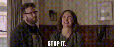 Kelly Rander and Rose Byrne in Neighbors 2: Sorority Rising, with Rose Byrne saying 'Stop It' alongside Seth Rogen.