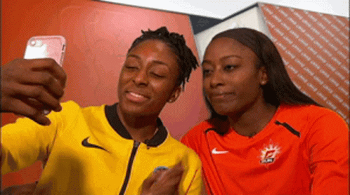 Neka Ogwumike and Chiney Ogwumike smile and make peace signs while taking a selfie.