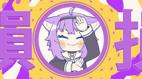 Nekomata Okayu performs her energetic Yona Yona Dance, featuring her signature purple hair and cat ears.